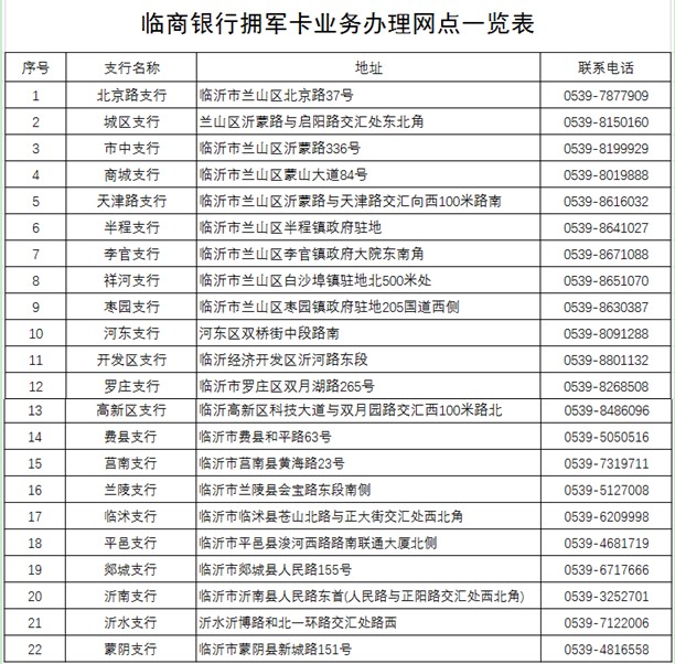 (五)若已在临商银行办理拥军卡,需要更换成带照片的拥军卡才能享受该项服务。