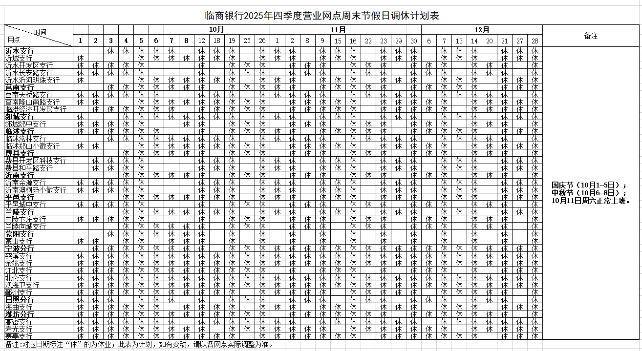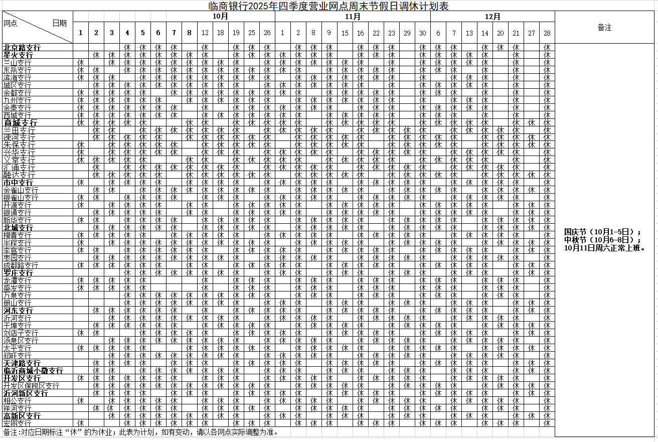 网点轮休